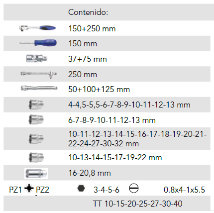 Surtidos de herramientas en bandejas de foam para carro de taller K1 1315
