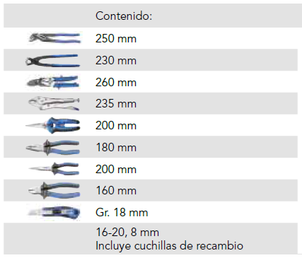 Surtidos de herramientas en bandejas de foam para carro de taller K1 1315