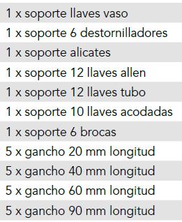 Surtido ganchos y soportes para herramientas 27 soportes