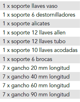 Juegos completos de soportes para fijar en los paneles perforados del armario K3 5290.